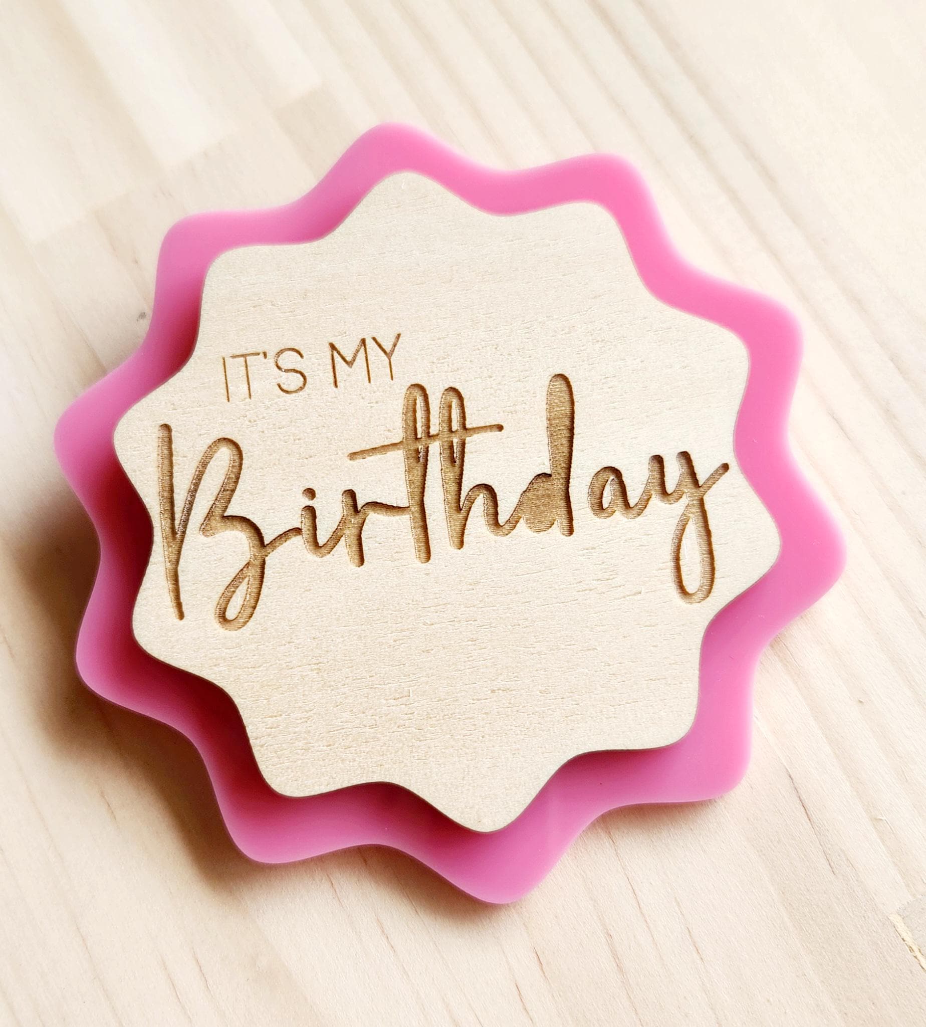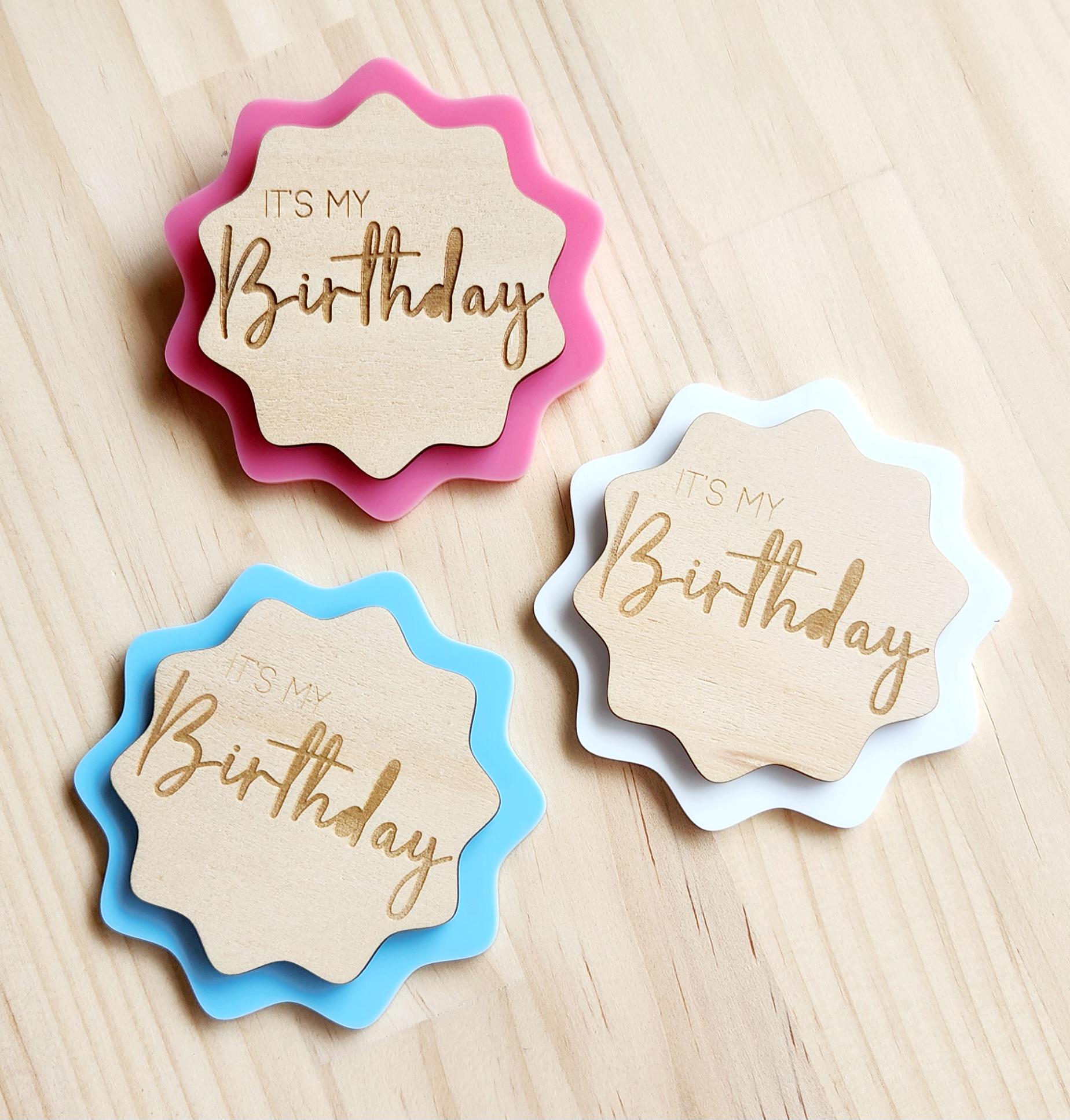 This adorable 'It's My Birthday' badge is such a cute addition to a birthday outfit, birthday party or going to school showing everybody it's your birthday.