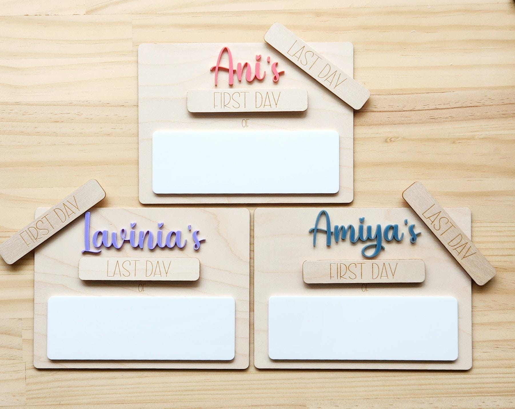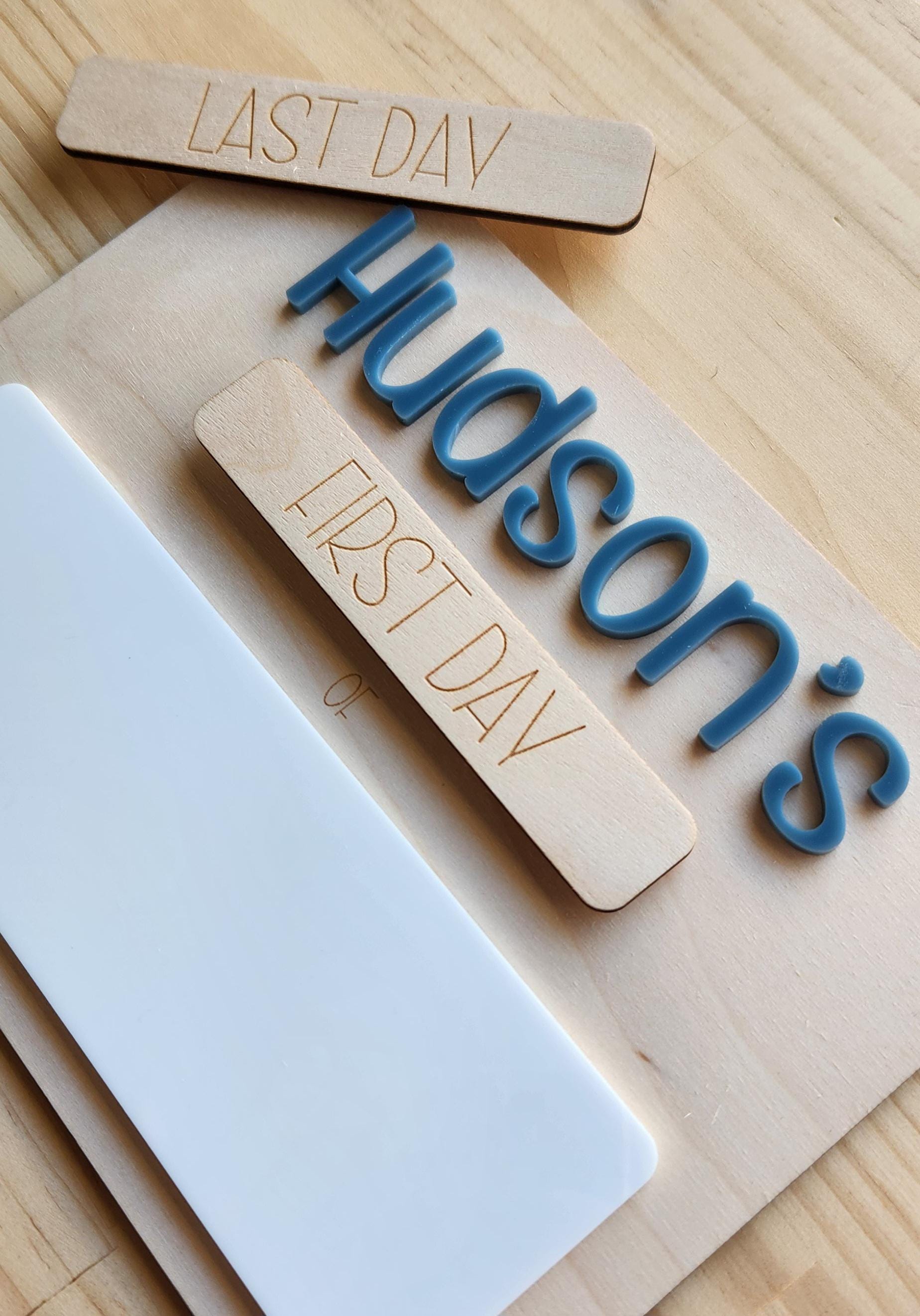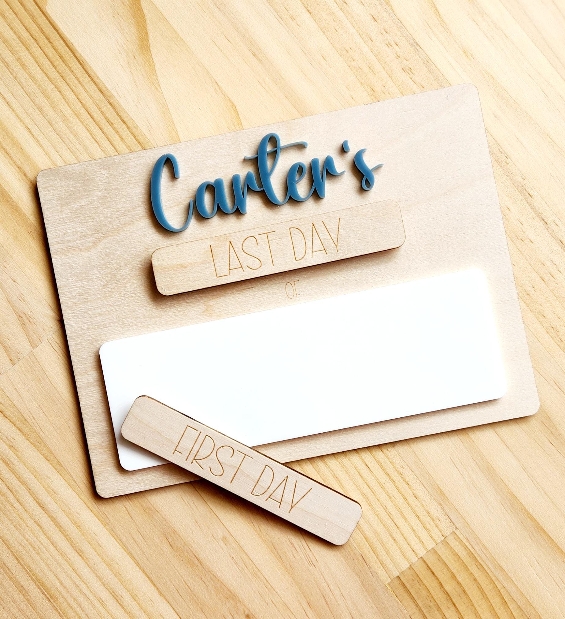 Create a memorable experience and an everlasting memory with this simplistic, elegant and special FIRST AND LAST DAY BOARD. Fill in the white box with the special first or last day event, using a dry erase whiteboard marker, and wipe clean using a microfibre cloth.