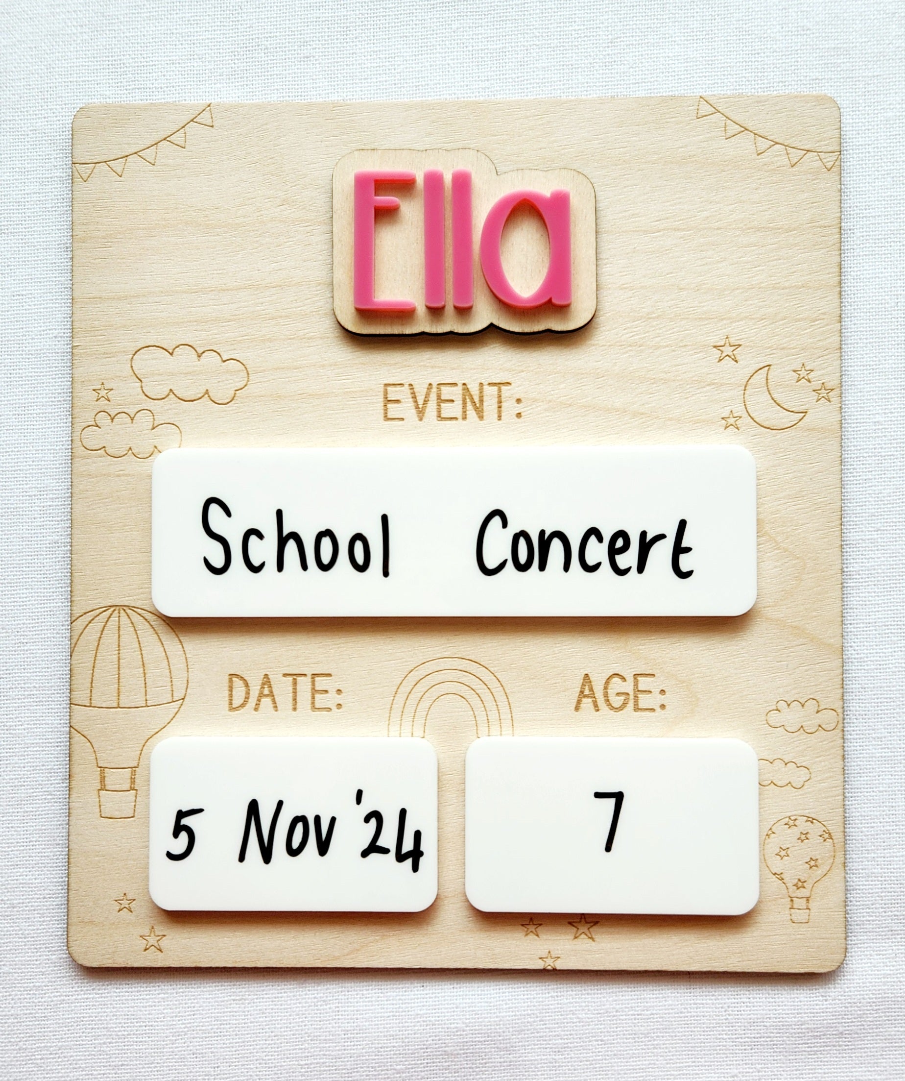 This sign allows you to record and keep every milestone, event, first day or last day memory alive for your child. The possibility of uses is endless.