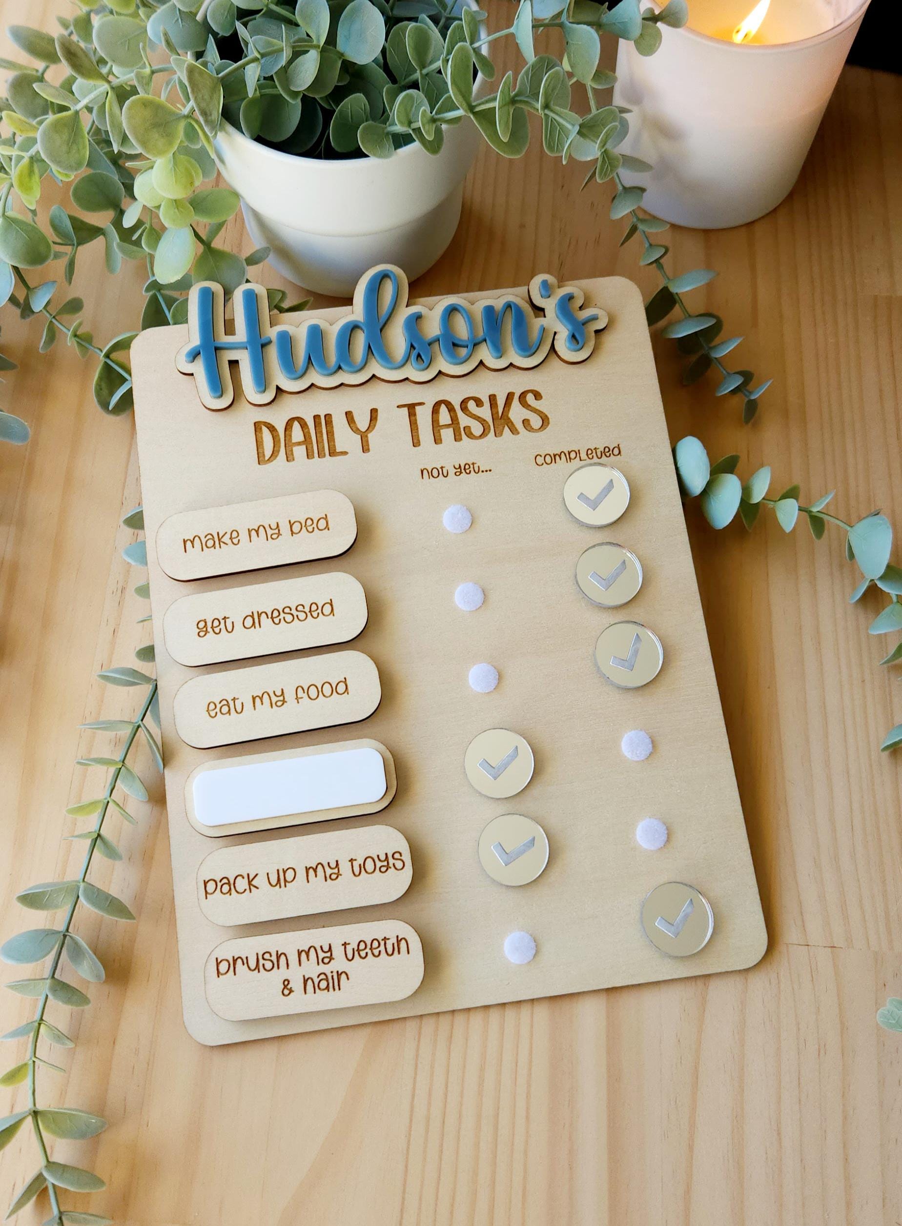 This silver tick daily tasks plaque will get little ones engaged and excited to get their set tasks done. This daily task board could just be the tool to help your child develop the independence and form those positive habits. Simply set the tasks, move all the silver ticks to 'not yet' and as the tasks get completed, move them to the 'completed side'