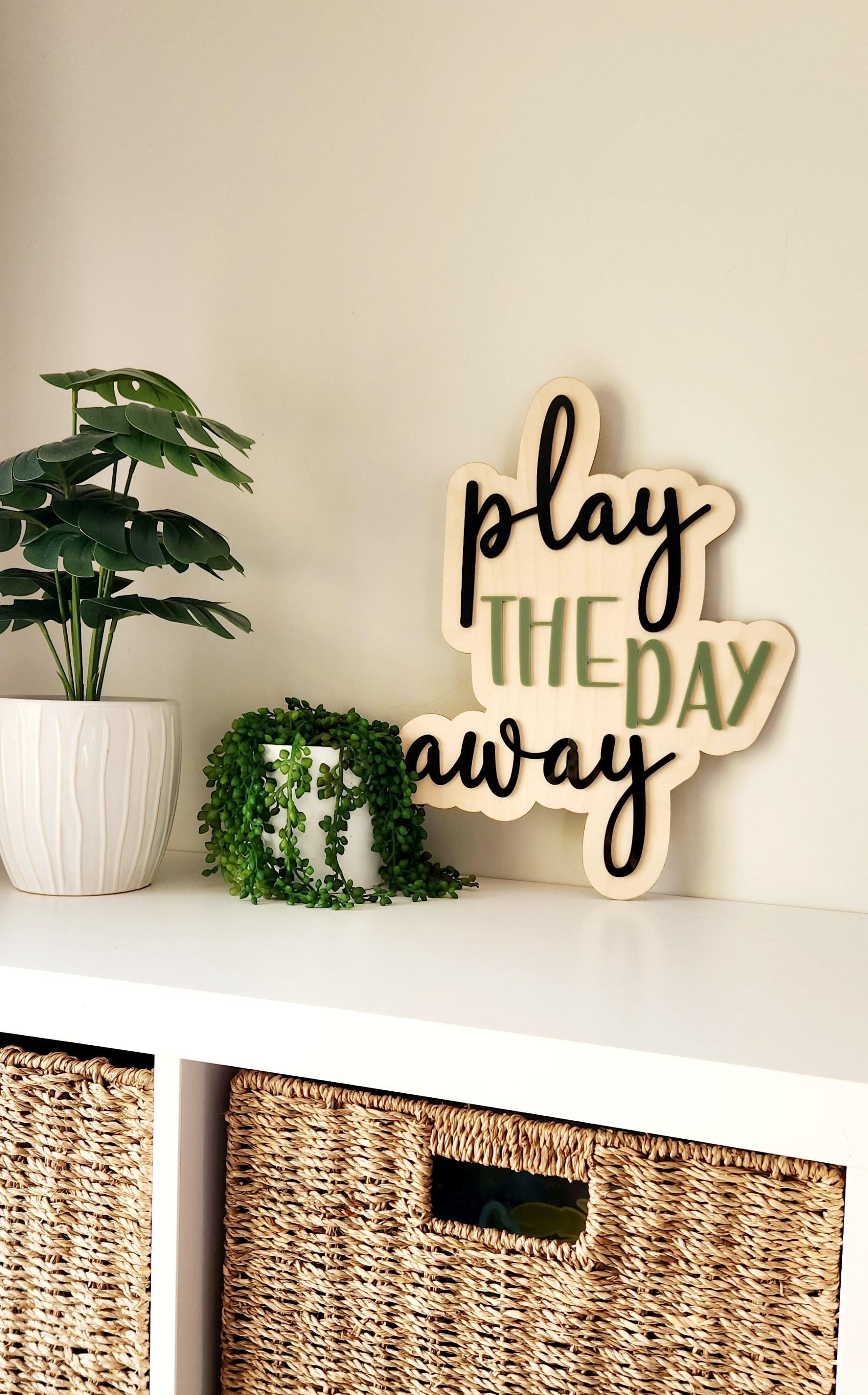This beautiful and fun 'PLAY THE DAY AWAY' sign will make a welcoming addition to your little one's play area. Customise the colours of each word to suit your home decor or playroom theme.
