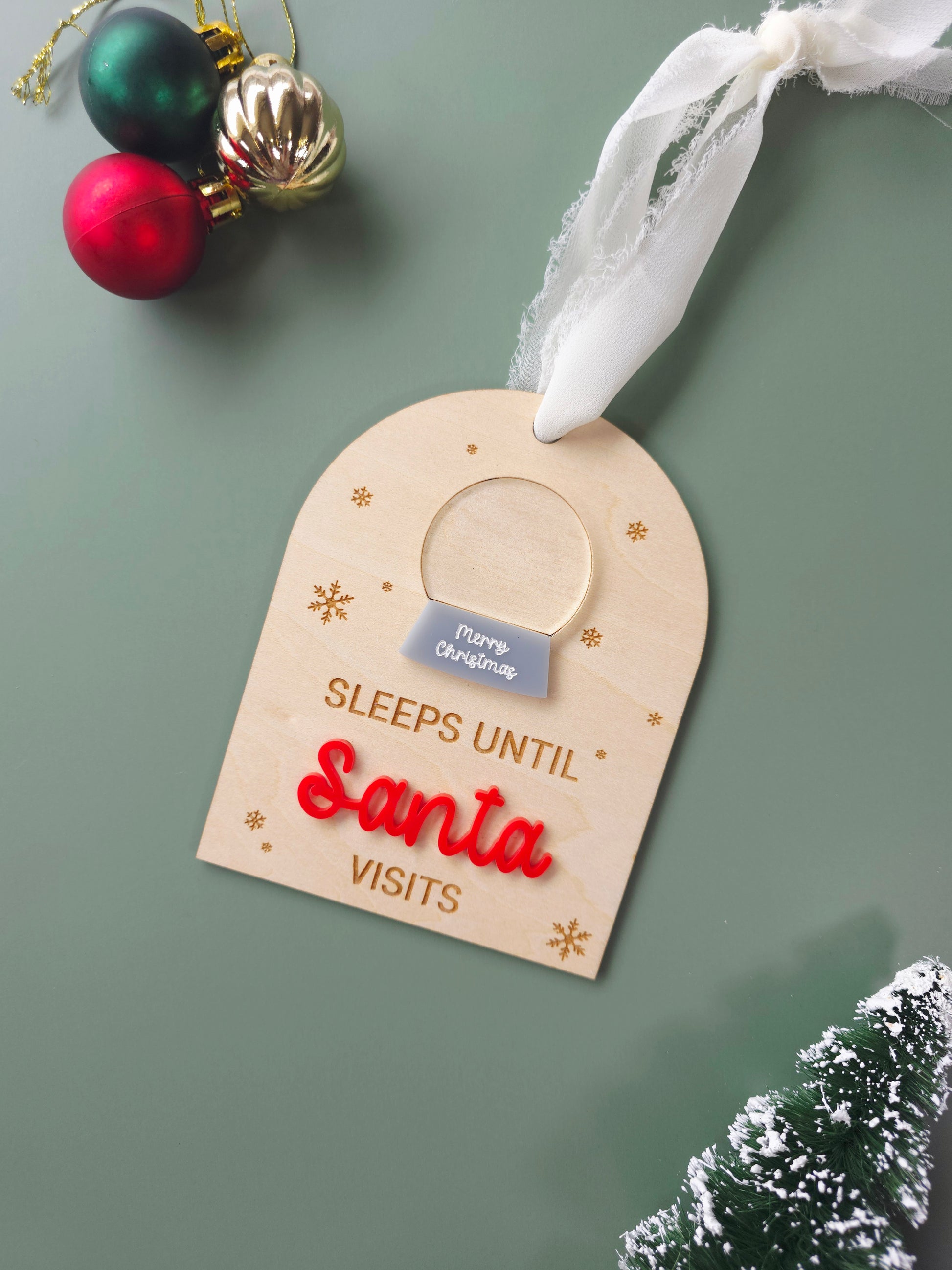 Count down the sleeps until Christmas in style with our Snow Globe Christmas Countdown! This smaller design is perfect as a Christmas tree ornament or, with the option of a magnet attached, as a fun fridge countdown the whole family can enjoy. Made from wood and acrylic, it’s a reusable piece that brings excitement year after year.
